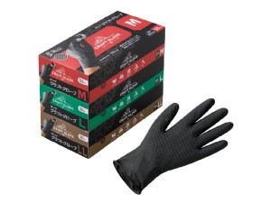 ダイヤモンド加工のすべり止めを施した、粉なしタイプのニトリル手袋。