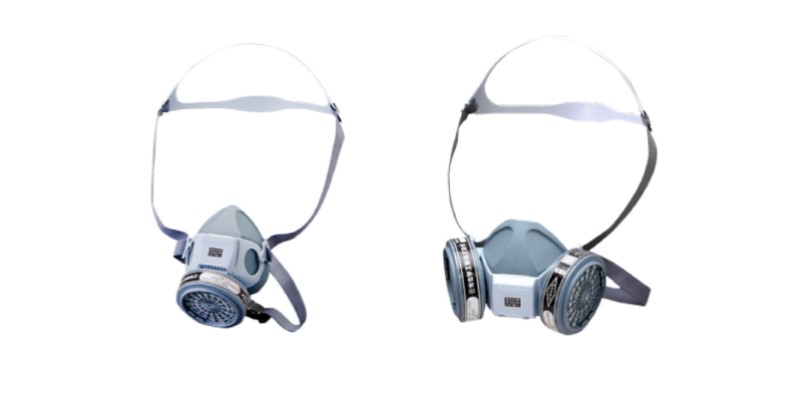 手元の視界を妨げないよう下付きに配置された吸収缶や、装着時の安定感を向上させるため後頭部にフィットする幅広頭部板の採用など、作業時のストレス軽減を追及した防毒マスクです。