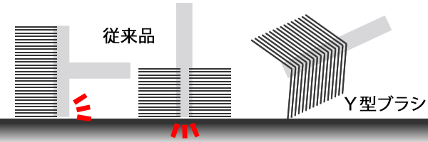 Y型ブラシ:前面・側面ともに作業ができる