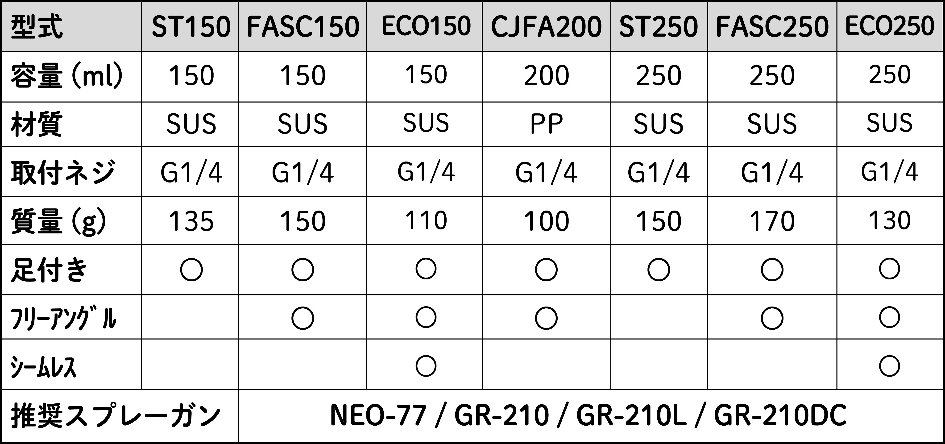 - 小型 重力式カップ 比較表 -