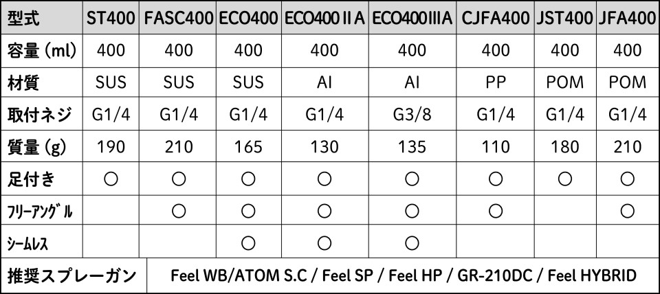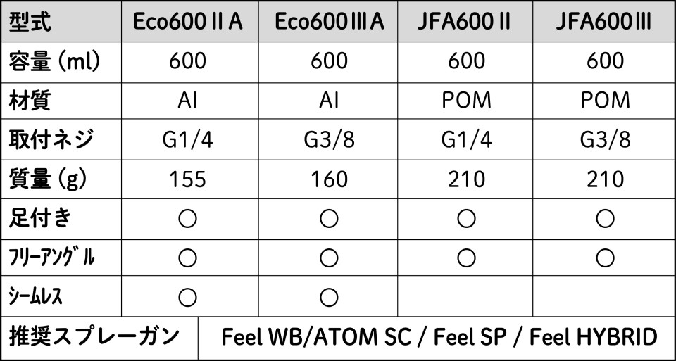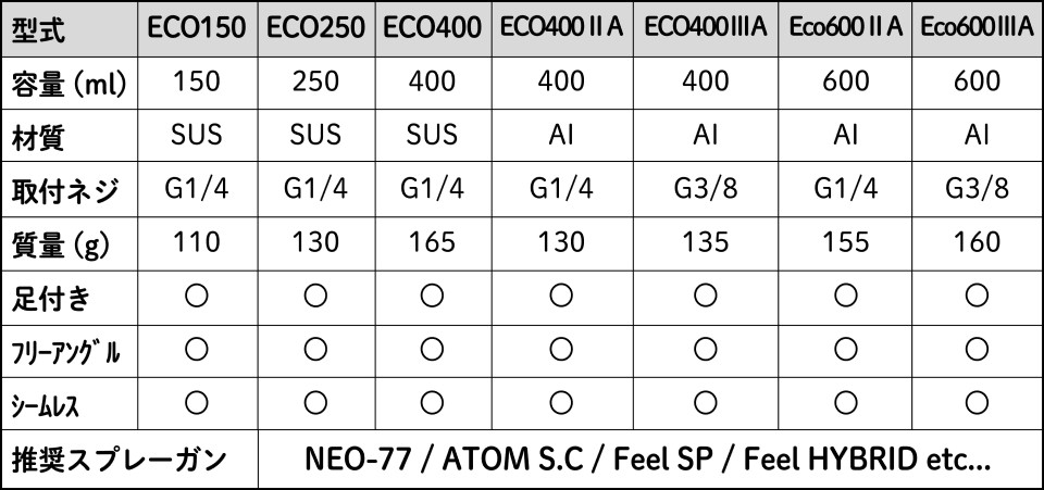 Eco400ⅢA、は標準装備。(Eco400はオプションパーツになります)漏れ防止キャップ標準装備の「ECO400LB」もラインナップ。