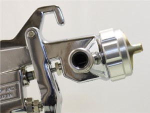 従来のスプレーガンより大口径のニップルを使用することで、高粘度の塗料でもカップからの塗料の供給を安定させ、高吐出タイプの塗料ノズルとB.O.S空気キャップによるジャストな微粒化が塗着効率を上げ、コート回数を減らします。