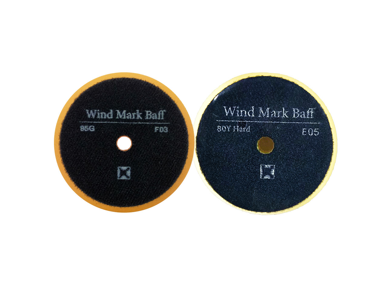 バフ表面に施した特殊な切込み「ウインドマーク」が、コンパウンドの目詰まりを軽減し、バフ清掃のエアーブローもしやすくなります。